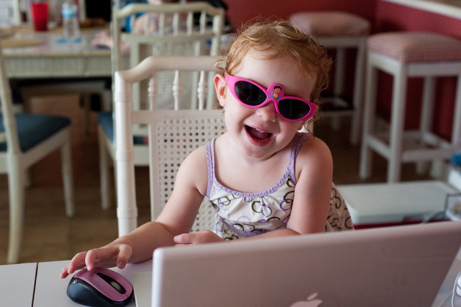 She has recently gotten hooked on computer games. She's quite adept at the mouse. At one point, she reached out and pushed one button on the keyboard. Instantly, iTunes was launched and we were jammin'.